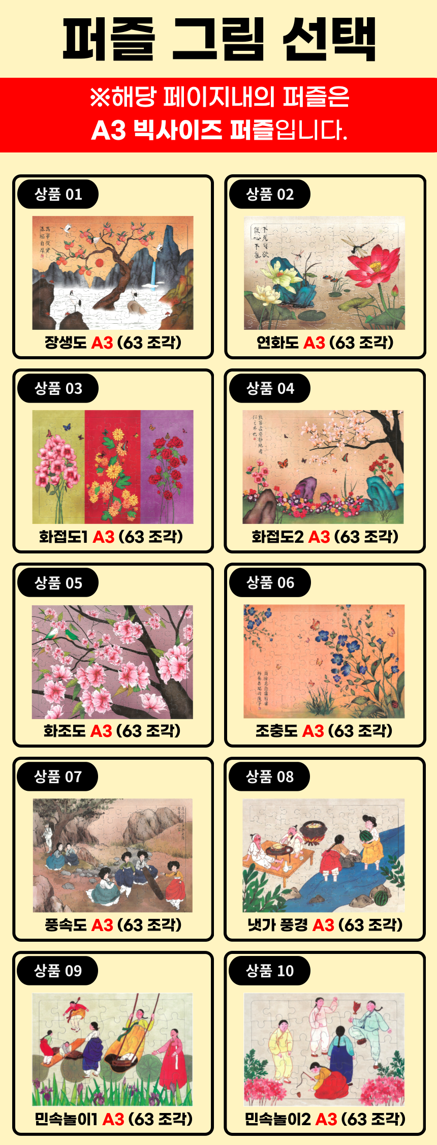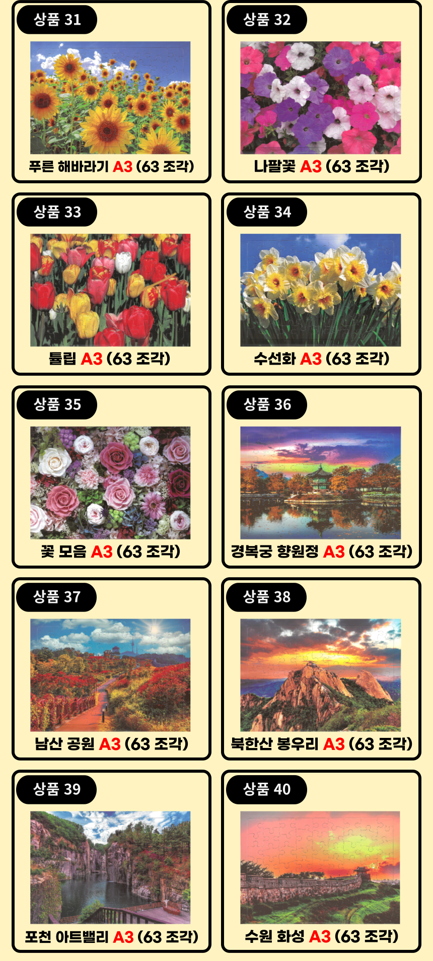 시니어 A3 큰사이즈 퍼즐 (63조각) 40종