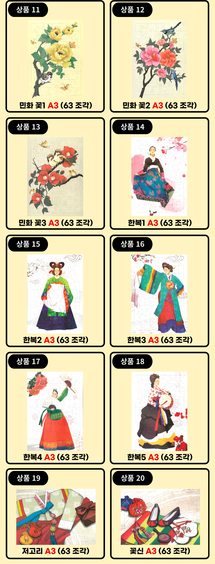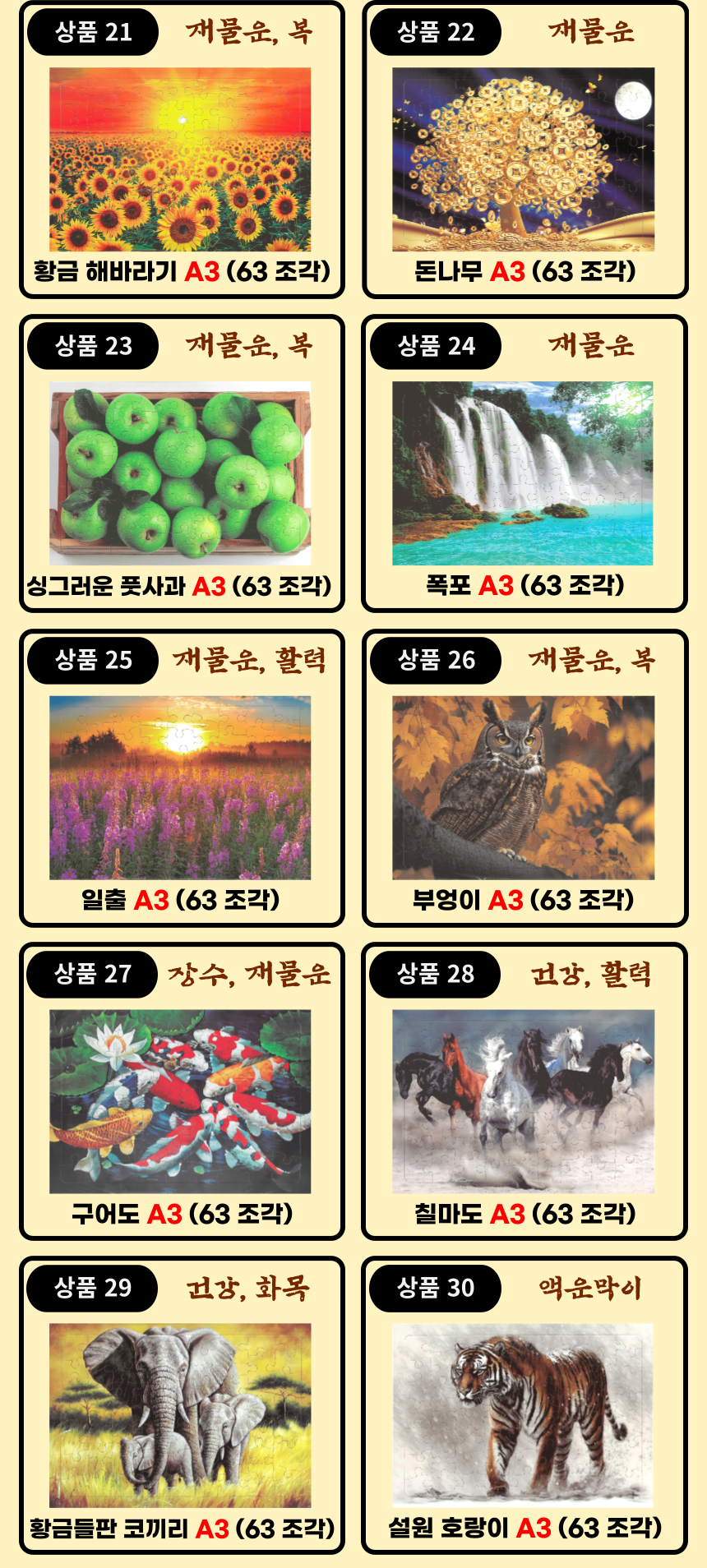 HOME > 치매예방 교구 > 치매예방 퍼즐 > 시니어 A3 큰사이즈 퍼즐 (63조각) 40종